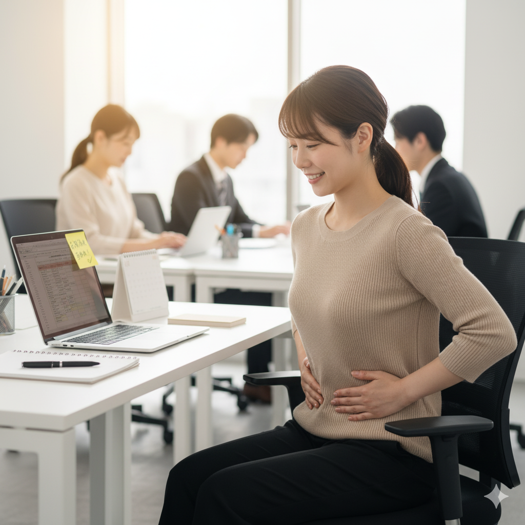 実は、普段の座り方を少し工夫するだけで腹筋を使い、自然にお腹を引き締めることができます。姿勢を意識することは、長時間デスクワークをしている方にとっても大切なセルフケアのひとつです。